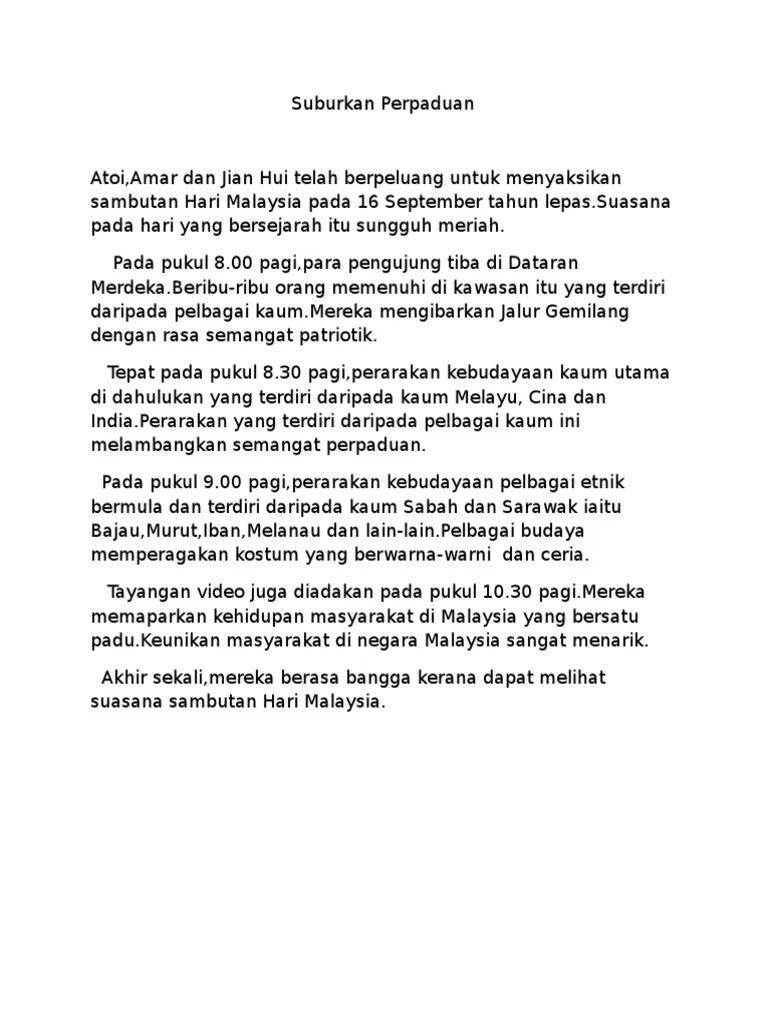 Perpaduan langkah langkah memupuk semangat perpaduan jabatan penerangan malaysia. Perpaduan kaum dalam kalangan masyarakat majmuk negara ini adalah . Karangan suburkan perpaduan melengkapkan karangan melalui formula bidasm. Karangan jenis catatan atau diari penerangan. Karangan tentang cara cara mengekalkan perpaduan negara : S.p 3.7.2 menghasilkan penulisan imaginatif dan deskriptif dengan bahasa yang menarik. #pdpr #bahasamelayutahun6 #gurubahasamelayu #bukutekstahun6 video menerangkan tentang karangan deskriptif dan imaginatif sebagai panduan kepada murid dan . Usaha membentuk masa depan malaysia menjelang 2050 menjadi negara teratas di dunia dalam ekonomi, kesejahteraan rakyat dan inovasi mestilah . Bila bercakap tentang pengorbanan kepada negara, penulis teringat. Karangan semangat perpaduan perkataan yang hilang.